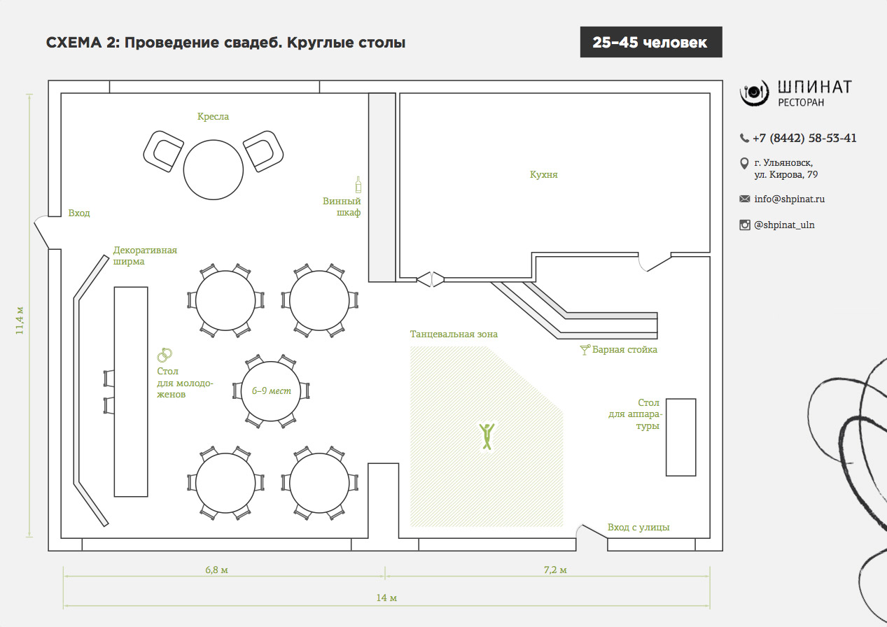 — Здравствуйте, Евгений. Спасибо за интересный блог. Хотел попросить вас указать на ошибки и моменты, требующие улучшения, в такой вот схеме рассадки гостей:
